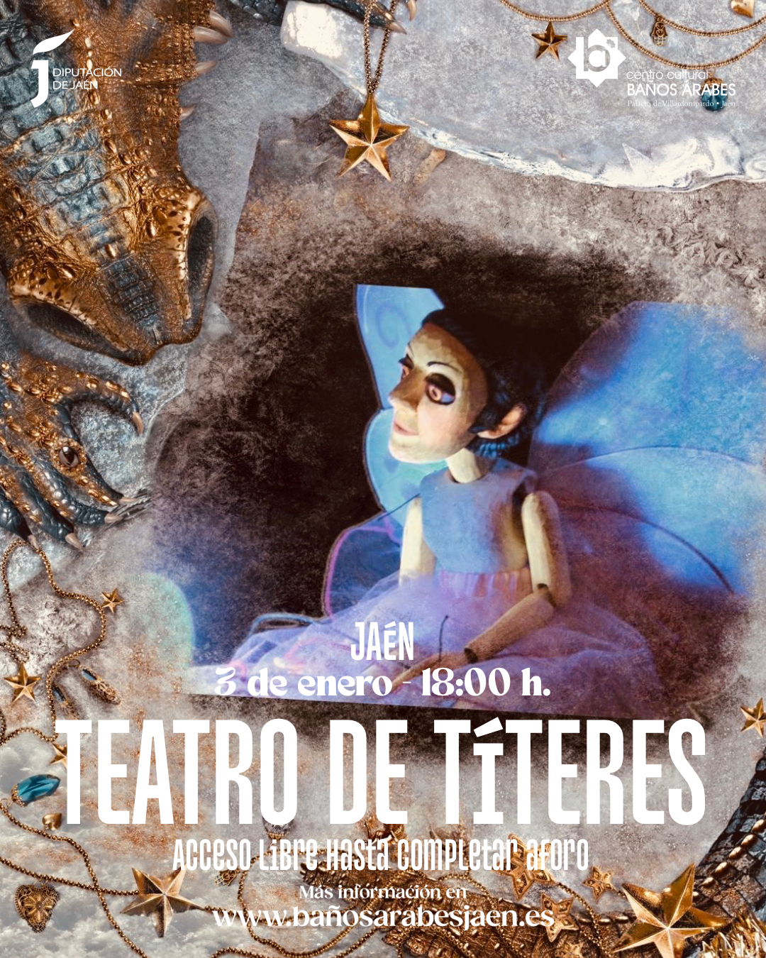 Esta adaptación del clásico de Antoine de Saint-Exupéry llega a Jaén en un formato de teatro de títeres que emplea la técnica de la luz negra (luz ultravioleta sobre materiales fluorescentes). A través de esta propuesta visual, los objetos y personajes cobran vida en la oscuridad, creando un ambiente mágico que refuerza el mensaje poético y filosófico de la obra original.